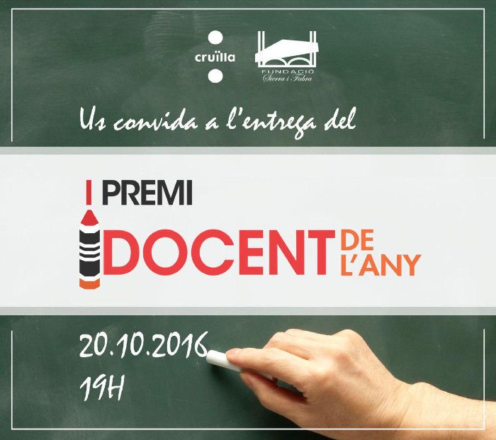La Fundació Jordi Sierra i Fabra i l’Editorial Cruïlla informen que el primer PREMI DOCENT DE L’ANY A CATALUNYA se l’endurà Bruna Scotto Tovani, professora d’Història de l’Art a Barcelona a l’Escola Massana de Barcelona.