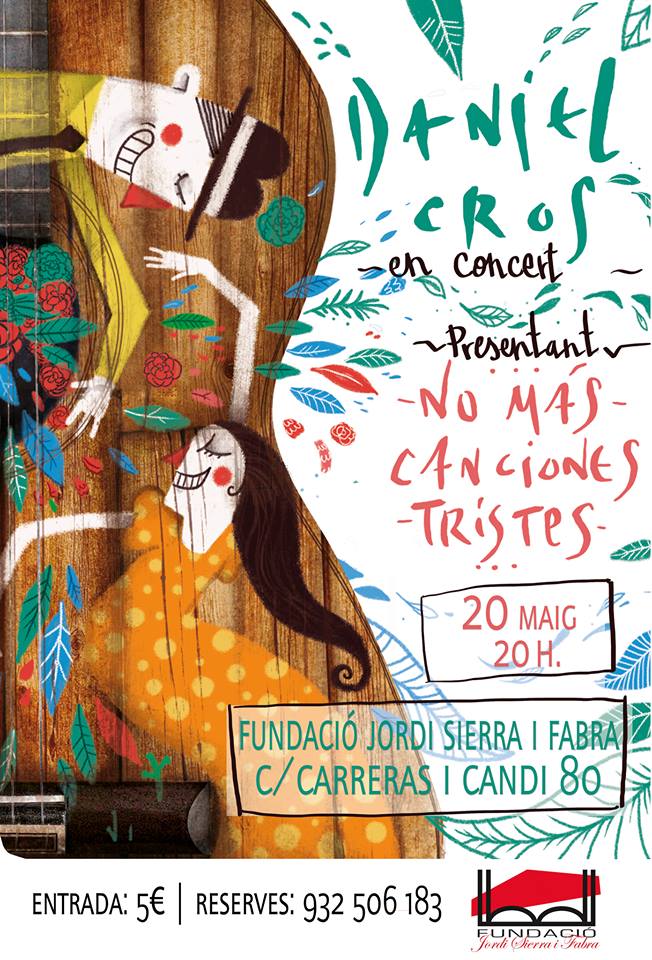 El músic barceloní Daniel Cros ofereix aquest divendres, 20 de maig, a les 20 hores, un concert a la Fundació Jordi Sierra i Fabra per presentar les cançons del seu darrer disc, “No más canciones tristes”.